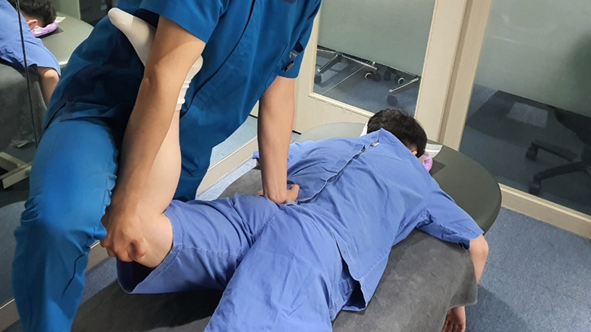경험 많은 한의사가 손으로 척추에서 무릎관절까지 교정,