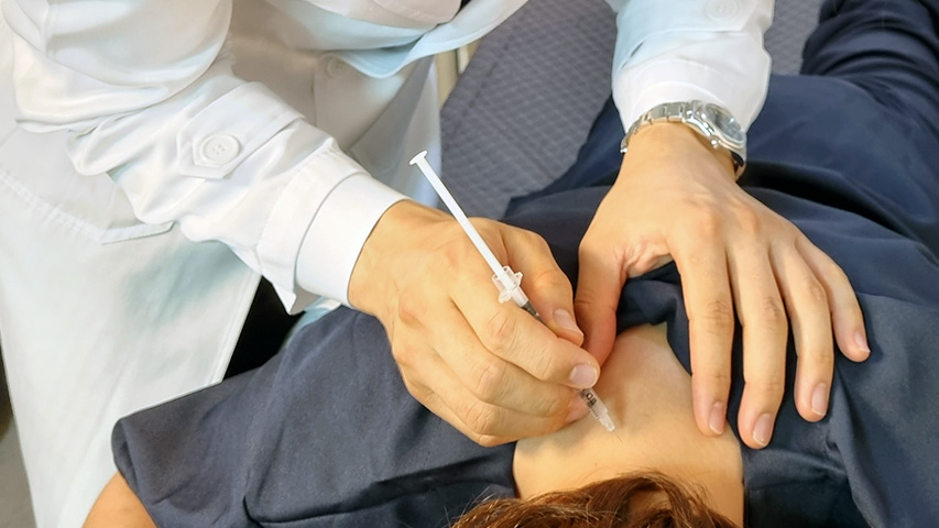경추 주변·근막의 교감신경 포착점에 포도당과 태반 주사