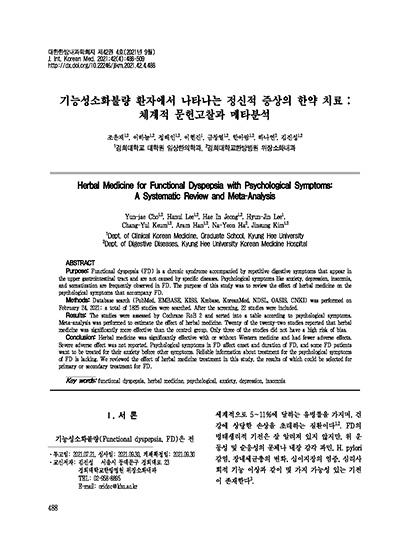 한아람, 하나연, 김진섭. 대한한방내과학회지,