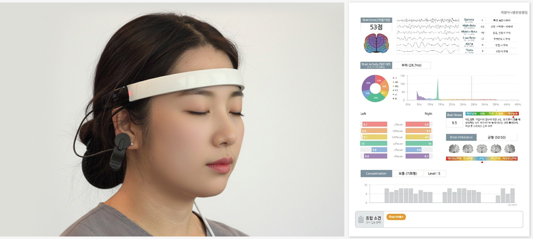 귀에서 들어온 소리를 뇌가 잘못 해석하거나, 신경이 예민해져 “없는 소리”를 만들어내는 이명·난청 환자의 뇌와 자율신경 상태를 파악하여 근본적 치료를 계획합니다.