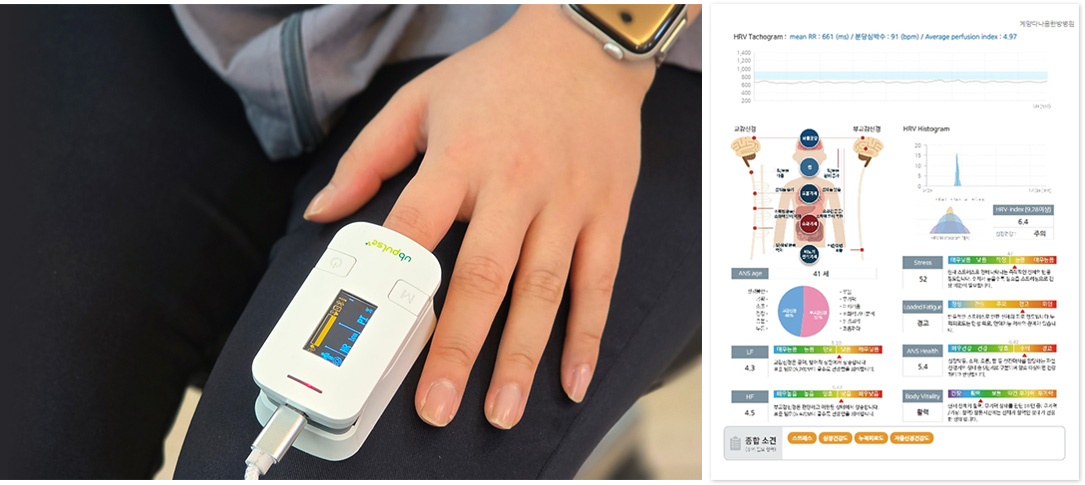 HRV(심박변이도) 지표, 자율신경 나이, 자율신경 균형, 교감/부교감 신경 지표, 신체 스트레스, 피로도 등 이명·난청에 관여하는 신경학적, 심리적 요인을 과학적으로 확인합니다.