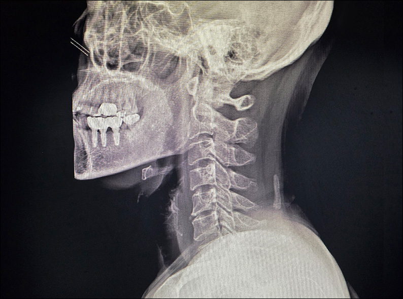 경추의 C자형 커브가 일자로 변형되고 뼈의 퇴행성 변화도 관찰되는 상태